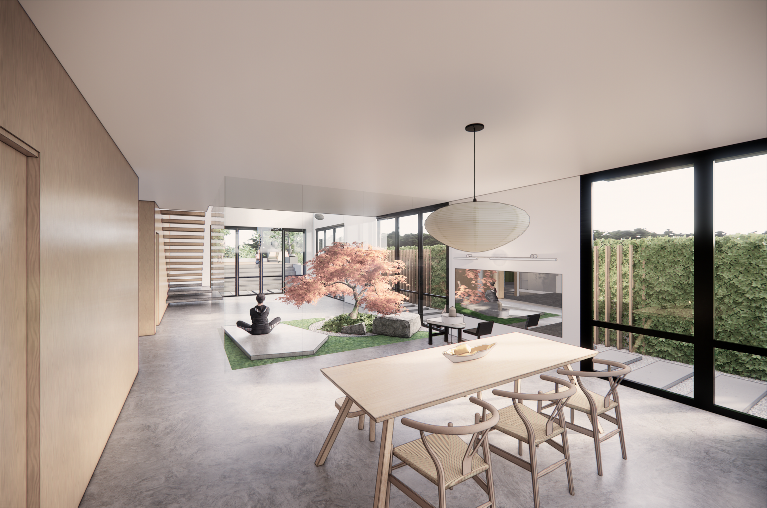 This 1960s California split level house was transformed into a contemporary home with an accessory dwelling unit (ADU) and zen garden. A new offset gabled metal roof provides the interior with large vaulted ceilings and skylights that allow natural light to permeate the space. Stucco and wood finishes allow the exterior to sit comfortably in its surrounding neighborhood context with modern building features such as dark metal blade canopies, bay windows and expansive accordion glass doors. This home prioritizes the connection between the interior and nature creating a calming and seamless environment.